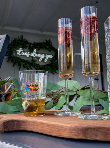 With a talented service team, we are ready to show you an ATOMIC TIME at your wedding, birthday, graduation party, corporate event and more! We offer bartending services for any size or style event, bringing a vintage vibe with this 1959 Roll-O-Vend concessions trailer that has been transformed into a Mobile Libation trailer! (What is a Libation? The instance of drinking in celebration!). So go ahead…Choose your cocktails and let us create the atmosphere! Not thinking of a bar for your event? We would LOVE to create a menu of mocktails or an ice cream social just for you!